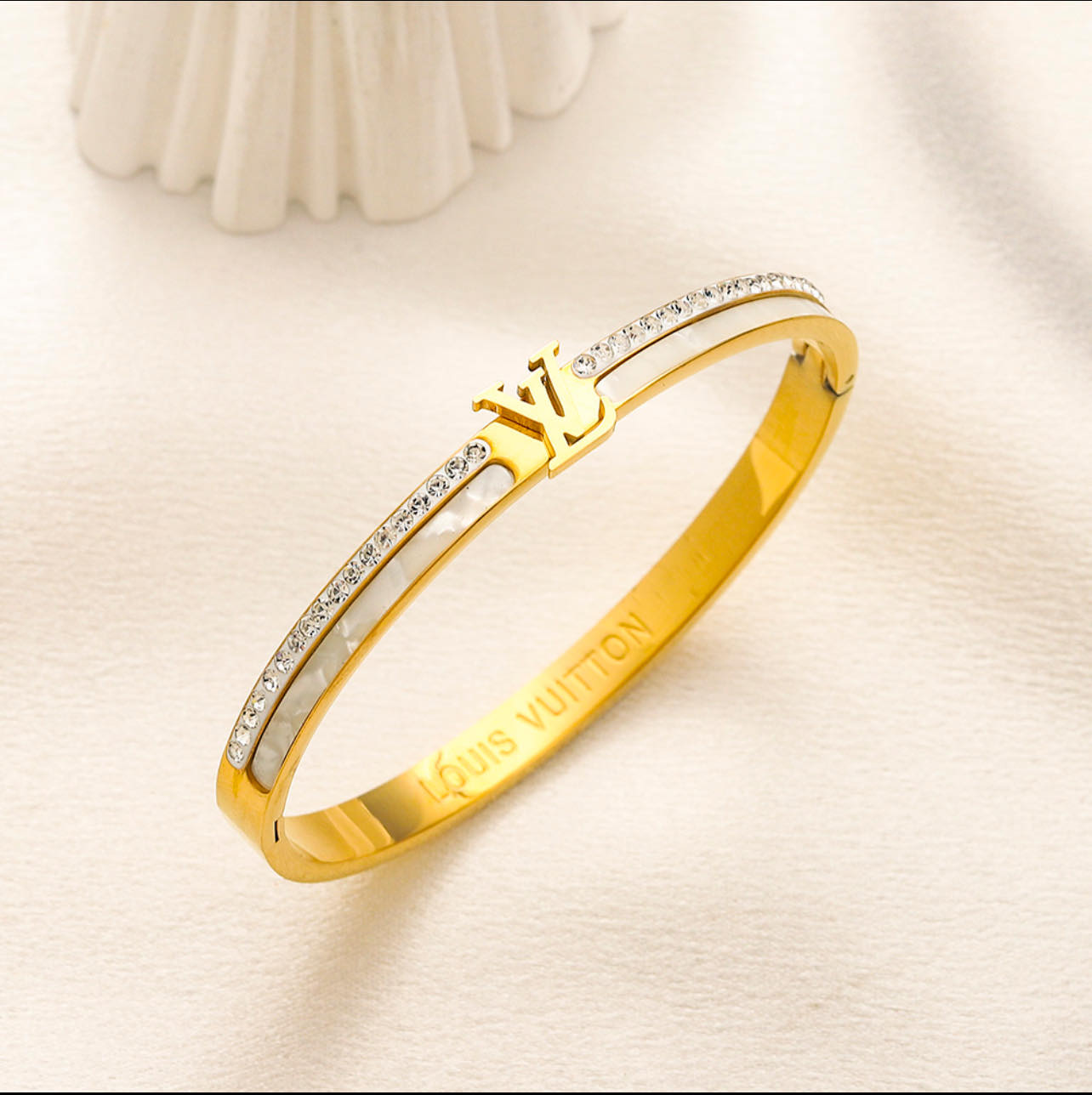 Bratara eleganta tip Louis Vuitton realizata din titan placata cu aur, inoxidabila.