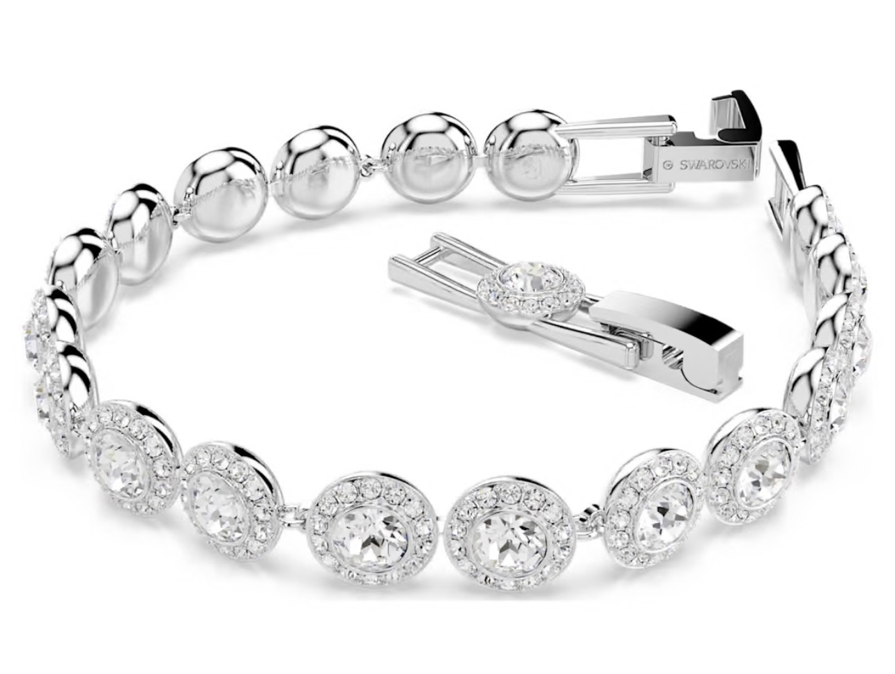 Bratara Tennis Angelic Lux de la Swa’rovski,placata cu rodiu,decorata cu cristale rotunde transparente cu un rafinament atemporal.
