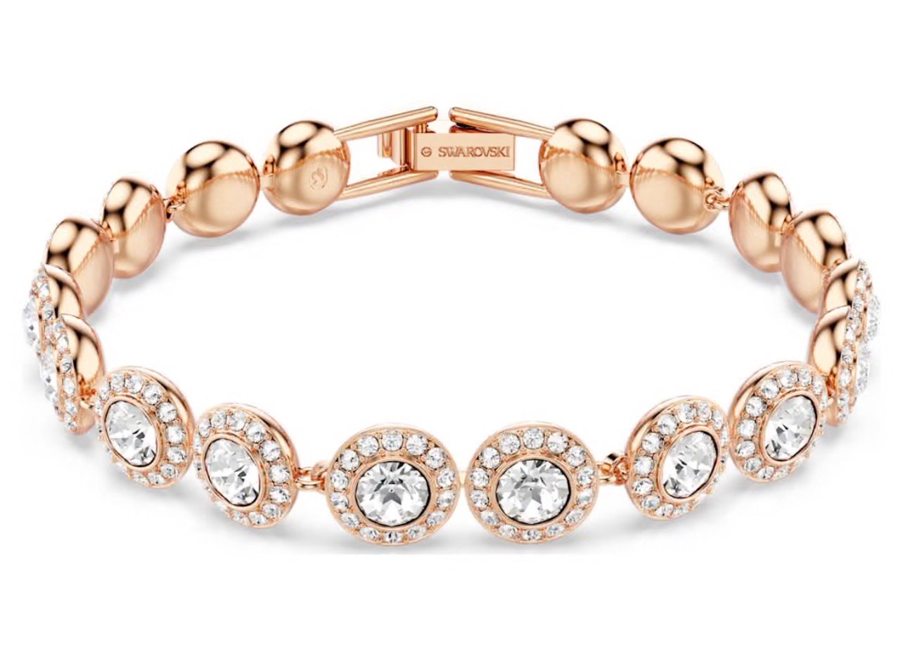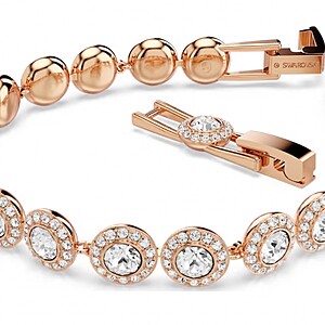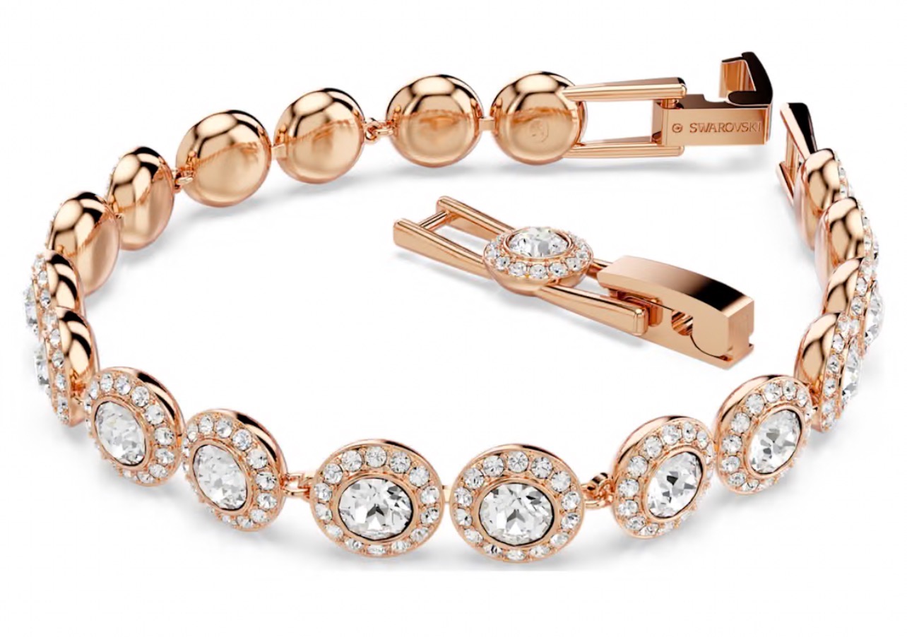 Bratara Tennis Una Angelic tip Swa’rovski,placata cu rodiu,este decorata cu cristale rotunde transparente,fiecare inconjurat de pave’ de cristale transparente,oferind un rafinament atemporal.