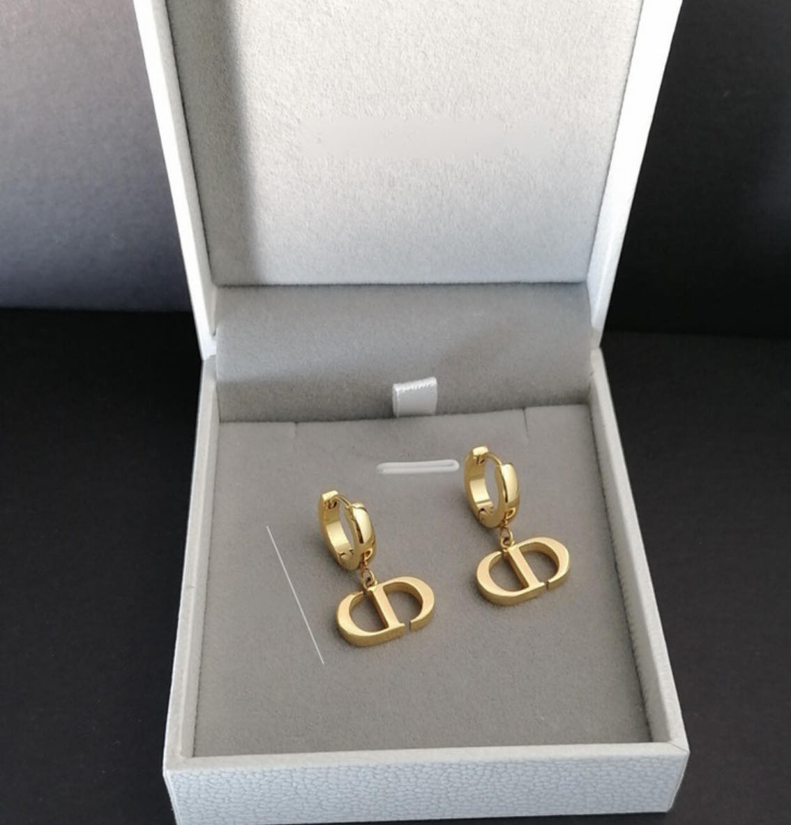 Cercei din titan placat cu aur,din gama de lux tip Dior,cu design minimalist in forma de cercuri si logo „D”.