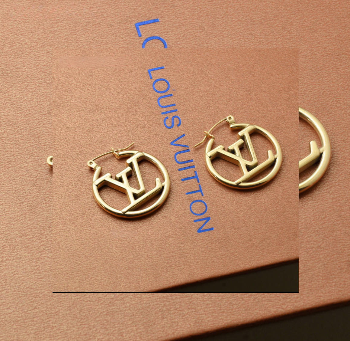 Cerceii tip Louis Vuitton din titan suflat cu aur,design simplu si in acelasi timp elegant,cu inchizatoare sigura. Ideali pentru un look rafinat.