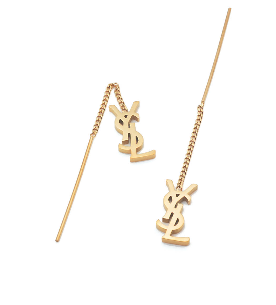 Cerceii tip Yves Saint Laurent cu lantisor din titan placati cu aur 18k sunt o combinatie eleganta de durabilitate si lux,evidentiind stilul sofisticat al brandului.