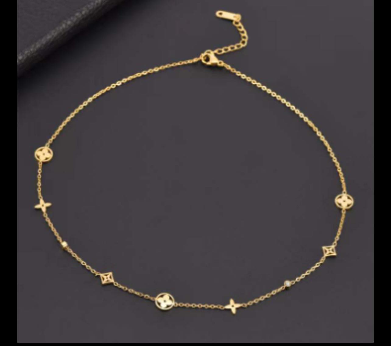 Colier delicat lacat cu aur de 18k,decorat cu elemente geometrice elegante. Ideal pentru un stil modern si subtil.